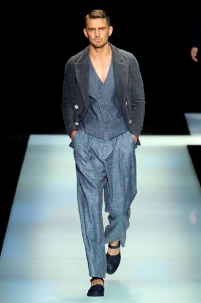 GIORGIO ARMANI此次又成功推出了一个广受好评的新系列。品牌新款现代,原始,其设计既符合市场又符合男性美标准,秀台上还穿插展现了各式精致裁剪的西装裤。大设计师更忠实于他的高雅哲学,任何时候都不进行多余夸张元素的赘加。