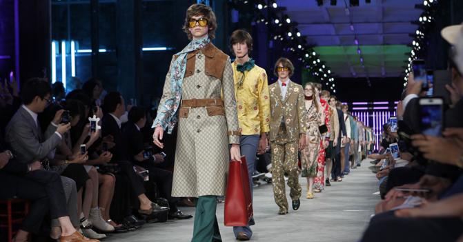 GUCCI在新创意总监Alessandro Michele的带领下,男女服饰间的界限越来越模糊。配件与复古系列细节的设计都采取较为中性的设计,从鞋带直到围巾。
