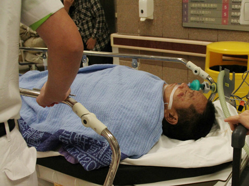 遭打伤昏迷的内地男游客被送院救治。(《大公报》)据香港《文汇报》报道,一对来自黑龙江的中年夫妇跟团到香港旅游,19日上午到红磡一间指定“消费点”珠宝店购物,却与内地女领队发生争执,双方继而动手扭作一团,中年男子疑中拳后倒地昏迷,心跳一度停顿,经抢救后仍命危。香港警方将涉案夫妇及女领队一并拘捕,交由重案组跟进。