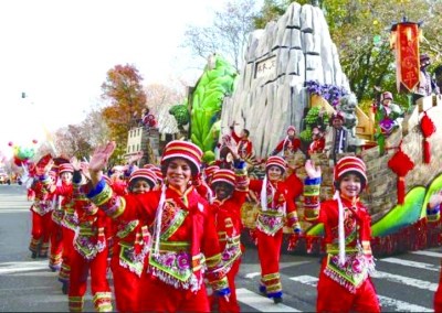 11月26日上午,一年一度的全美文化盛事——梅西百货感恩节游行庆典活动在纽约举行,这是中国第二次受邀参加这一全美最盛大、历史最悠久的感恩节庆典活动。中国昆明石林主题花车精彩亮相游行方阵,云南少数民族表演方阵载歌载舞,将多姿多彩的中国少数民族多元文化与美仑美奂的中国旅游人文资源生动展现在数百万现场观众和上亿电视观众面前。(郭文梅)