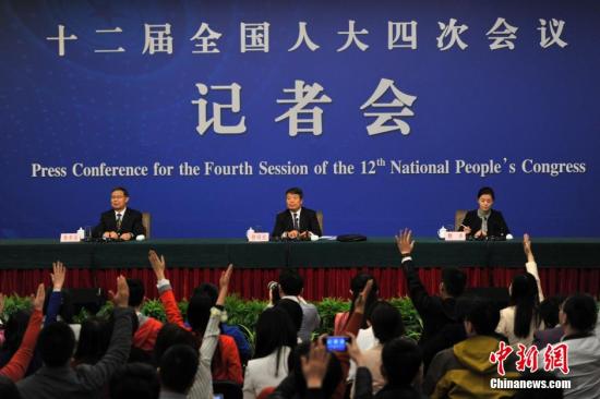 3月6日,十二届全国人大四次会议新闻中心举行记者会,邀请国家发展和改革委员会主任徐绍史就“经济社会发展情况和‘十三五’规划《纲要》”的相关问题回答中外记者的提问。中新社记者 金硕 摄
