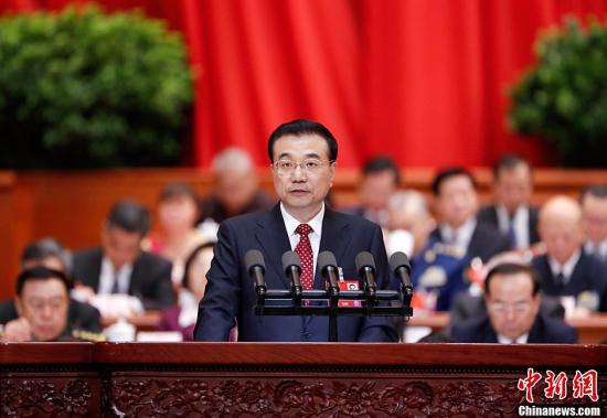 掌声中,中国国务院总理李克强走上讲台,向台下深鞠一躬。在接下来两个小时内,他代表国务院向大会报告政府工作,请人大代表审议,并请政协委员提出修改意见。全场近5000名代表、委员以热烈掌声作出回应。