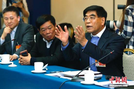 资料图。傅成玉(右一)。(中新社发 富田 摄) 全国政协委员、中石化集团原董事长傅成玉8日表示,目前国企改革“上热下冷”——政府忙于改革,国企一直在等待。他并警告,防止把改革的“歼灭战”拖成“持久战”。