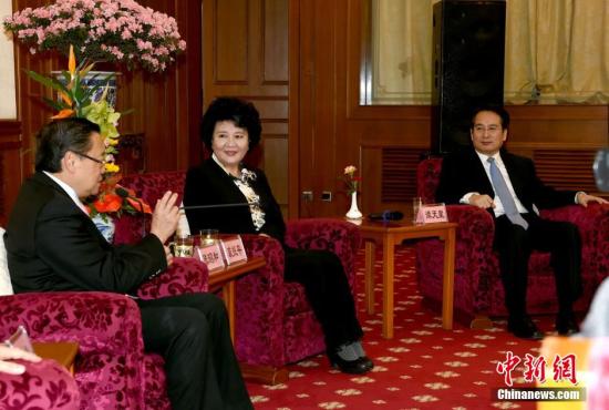 3月9日,中国国务院侨办主任裘援平、副主任谭天星在北京会见列席全国政协十二届四次会议的海外侨胞代表。 中新社记者 张勤 摄3月9日晚,中国国务院侨务办公室主任裘援平、副主任谭天星在北京会见了列席全国政协十二届四次会议的海外侨胞代表。