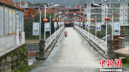 图为村中侨胞捐建的跨江大桥。 柯宁 摄
