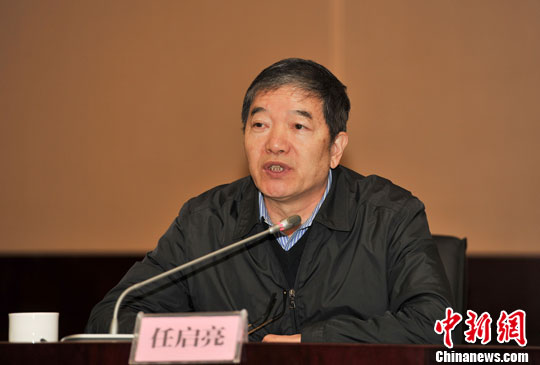 图为中国国务院侨办副主任任启亮在工作会上讲话。中新社记者 张畅 摄