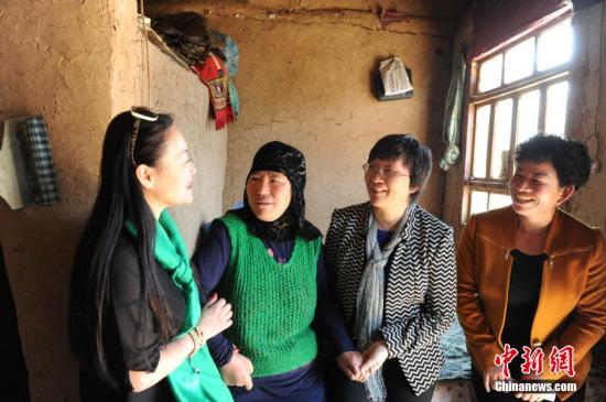 4月11日,国务院侨务办公室副主任王晓萍(右二)携手来自英国、新西兰、加拿大、日本、菲律宾等世界各地的20多位侨资企业家来到甘肃积石山县对接扶贫项目。经过一天考察,傍晚的座谈会上,侨商团落实了帮扶项目,还现场捐资超过百万元。杨艳敏 摄