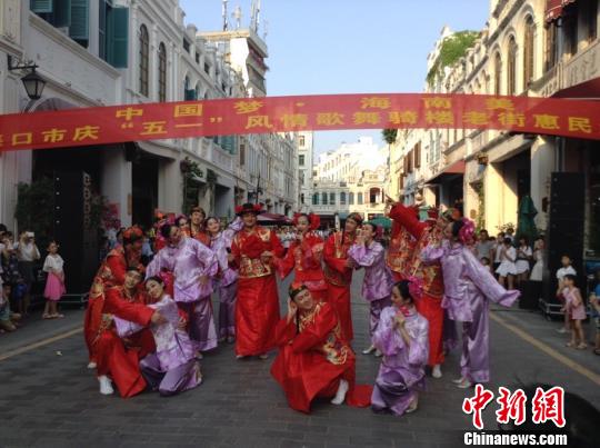 海口骑楼老街“五一”节目轮番上演(雷雪梅 摄)