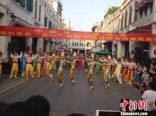 海口骑楼老街丰富节目轮番上演,尽显侨文化(雷雪梅 摄)“五一”期间,为丰富市民和游客的文化生活,海口骑楼老街献上了一系列精彩的特色节目表演。
