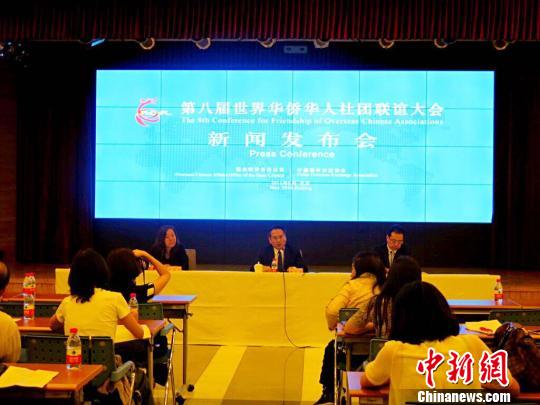 第八届世界华侨华人社团联谊大会新闻发布会现场。 郝爽 摄中国国务院侨办副主任谭天星17日在北京宣布,以“中国梦侨胞梦——团结合作造福侨社”为主题的第八届世界华侨华人社团联谊大会,将于6月1日至3日在北京举行。