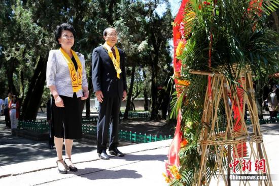 中国国务院侨务办公室主任裘援平敬献花篮。 中新社记者 张远 摄