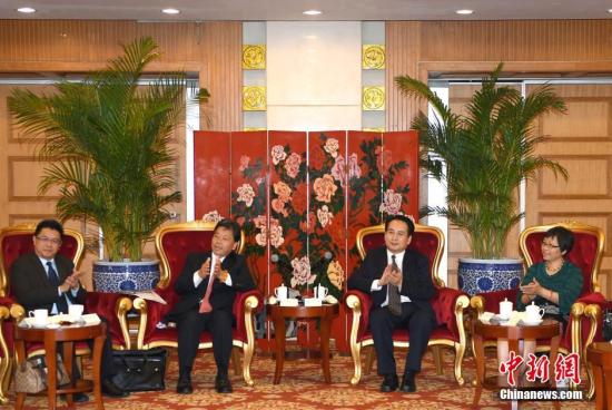 6月13日,中国国务院侨办副主任谭天星在北京会见亚洲台湾商会联合总会代表团一行。 中新社记者 张勤 摄6月13日,国务院侨办副主任谭天星在北京会见了亚洲台湾商会联合总会代表团一行。
