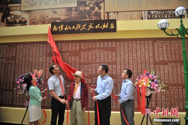 7月17日,南侨机工罗开瑚(左三)参与揭牌。当日,云南省首个南侨机工历史文化社区在昆明五华区揭牌,以此向市民展示南侨机工回国参加抗战的历史。中新社记者 刘冉阳 摄云南省首个南侨机工历史文化社区17日在昆明市五华区揭牌。