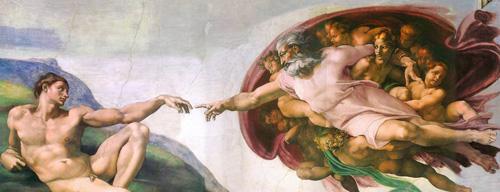 米开朗杰罗创作人物形象时注重表现他们的脸部、身体和形态,惟妙惟肖地勾画出人类的珍贵天资,揭示出人类的新的认识空间:对人类自身能力的觉悟和人类能够独立创造自身的历史和命运的认识。简言之,米开朗杰罗在赞美上帝的同时,也充分预示出现代人类对于自身智慧和才能的坚定信念。