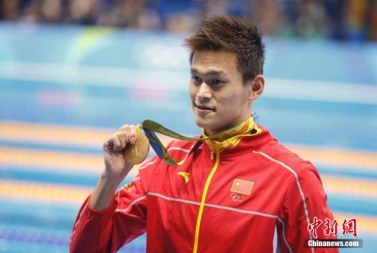 8月8日,在里约奥运会男子200米自由泳比赛中,孙杨逆转获得冠军,这是本届奥运会孙杨获得的首枚金牌。也是中国代表团的第五枚金牌。图为孙杨高举金牌。 中新网里约热内卢8月8日电 (记者 高凯)刚刚结束的里约奥运男子200米自由泳决赛中,中国选手孙杨以1分44秒65的成绩问鼎金牌,这也是其在本届奥运会的首枚金牌。赛后提及未来与霍顿的1500米自由泳较量,孙杨表示,只关注自己,希望大家不要多想中国游泳与别人的矛盾,多关注自身的发展。