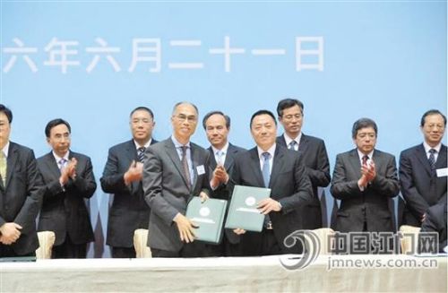 除此之外。2015年粤澳合作联席会议也首次在江门举行。会上,江门与澳门签署了《澳门特别行政区政府与江门市人民政府关于推进双方合作意向书》和《关于加强江澳金融合作的备忘录》。