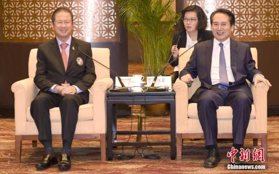 9月12日,中国国务院侨办副主任谭天星在北京会见泰国青年企业家协会访华团。中新社记者 张勤 摄 中新社北京9月13日电 (付强)国务院侨办副主任谭天星12日在北京会见了泰国青年企业家协会访华团一行。