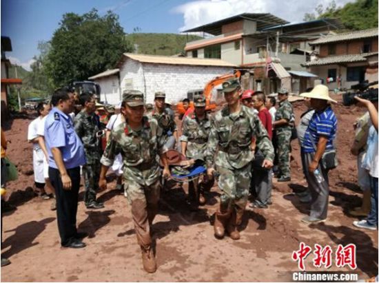图为当地正在开展救援 钟欣 摄中新网昆明9月17日电 (记者 马骞)记者17日晚从云南省楚雄彝族自治州元谋县政府新闻办获悉,截至目前,元谋泥石流灾害已造成1人失联,7人受伤,黄瓜园镇朱布村和海洛2个村民小组民房倒塌16户,并形成长700米×宽300米×高6米的堰塞湖,堵塞物约126万立方米土石方量。