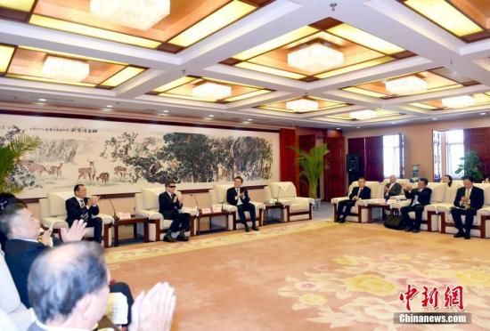 9月19日,中国国务院侨办副主任李刚在北京会见海外台商大陆参访团。中新社记者 张勤 摄