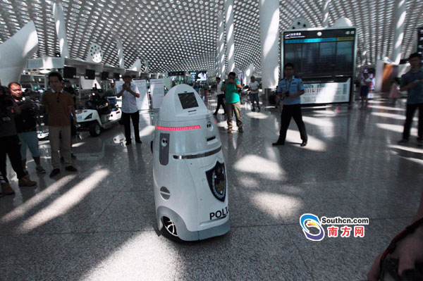 国内公安首台智能安保机器人正式在深圳机场T3航站楼上岗