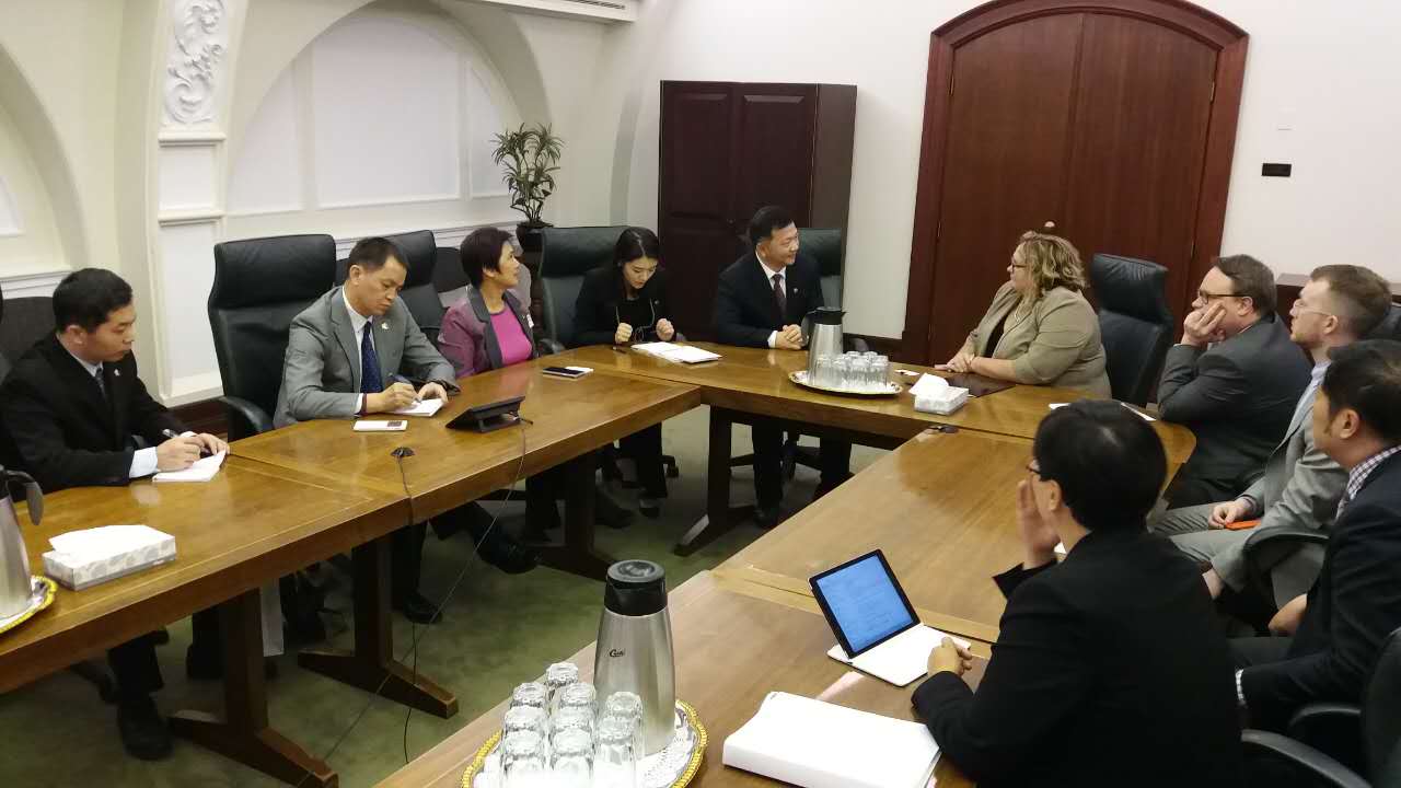 当地时间2016年9月26日,正在加拿大埃德蒙顿访问的中共广东省委常委、宣传部部长、广东省对外文化交流协会会长慎海雄,在艾尔伯塔省议会中心和省政府联邦大楼分别会见了艾尔伯塔省副省长兼卫生厅长萨拉.霍夫曼,省议会副议长兼经济贸易厅厅长德伦.比勒斯,并出席广东-艾尔伯塔省“21世纪传媒发展机遇与挑战”圆桌会议。双方就加强文化旅游交流、促进两省经贸合作等达成广泛共识。