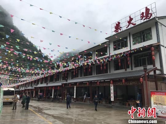 图为城口庙坝镇曹家坝柴火鸡美食街。 钟旖 摄