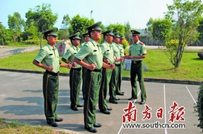 作为刚入营的新兵,队列训练是必不可少的基本科目,虽然早已过了秋分,但处于亚热带地区的汕头市依然骄阳似火,上午气温就攀升到30℃以上。长时间烈日的烧烤、重复的队列训练、班长严苛的要求都让这群“小鲜肉”们感受到边防军人的初体验。“上万次的重复练习是为了战时的一次亮剑,量的积累才能产生质的飞跃”带训班长梁定贤将自己的座右铭融入到训练中。