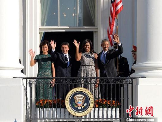 当地时间10月18日,意大利总理伦齐对白宫进行正式访问,美国总统奥巴马为其举行了盛大的欢迎仪式。