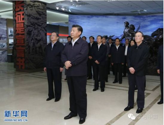 图为:2016年9月23日,党和国家领导人习近平、俞正声、刘云山、王岐山、张高丽等在中国人民革命军事博物馆参观“英雄史诗不朽丰碑——纪念中国工农红军长征胜利80周年主题展览”。中国共产党在其95年的伟大征程中,为中华民族和世界创造创造了许多伟大奇迹。但要说第一个,则非长征莫属。前无古人,后启来着的长征伟业,不仅给我们、也给人类留下了不朽的精神财富。请和“学习中国”小编一起倾听习近平讲述长征胜利给我们的启示。
