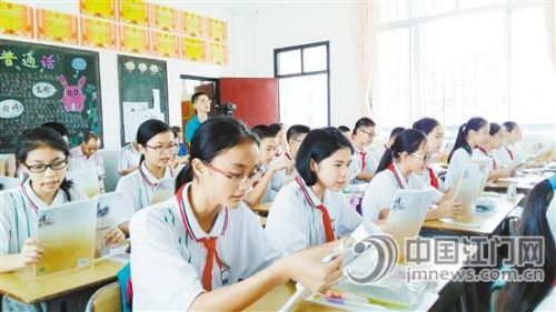 新会葵城中学学生津津有味地阅读《江门历史》。什么是“卖猪仔”?什么叫“唐人街”?什么叫“金山伯”?家乡名人的趣闻逸事,昔日华侨出洋谋生的艰辛,今日侨乡的风土人情……如今,在我市(江门)初中生的历史课堂上,老师们利用乡土教材《江门历史》,以及影视、民谣、图片等资源和本地区的历史文化知识,和学生一起回顾家乡历史,体会侨乡独特文化,上出了有地方味的历史课,先一步践行了广东省地方综合课程。