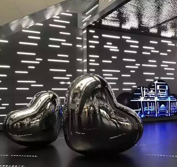 “云之心”则是一个昵称“胖胖云”的雕塑互动区。一大一小两颗心组成的云状镜面不锈钢雕塑错位排放,其中“云大大”高度为2.26米,取意于广州定名时间公元226年;“云小小”高度为1.907米,源于中国的第一位飞机设计师冯如在1907年首次试飞成功。