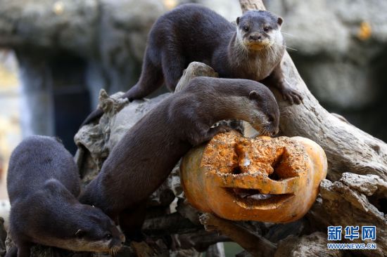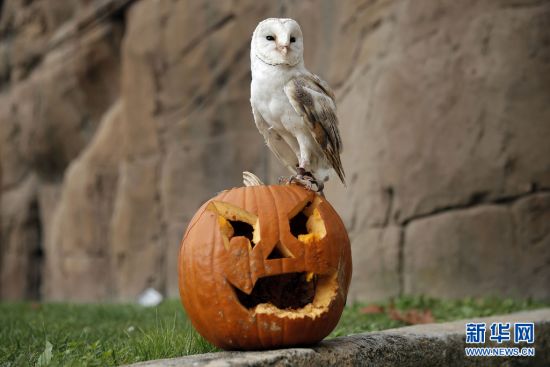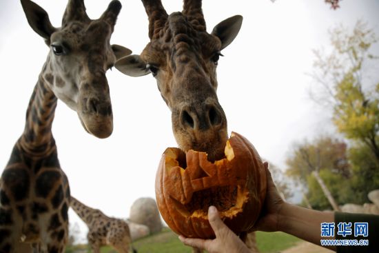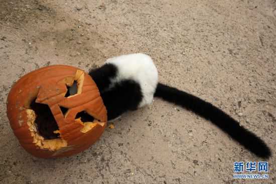 意大利某地的动物园为动物提供了南瓜灯,让动物也过了一回万圣节。