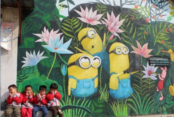 吹着竖笛的小熊维尼、圆滚滚的功夫熊猫、憨态可掬的小黄人……近日,企石镇铁岗、上洞、博夏等村的居民楼墙上多了许多手绘漫画,让原本的旧房子顿时变得“萌萌哒”。据悉,这是企石镇妇联、社会事务办、工会等部门联合举行的“古村落遇上动漫屋”活动。
