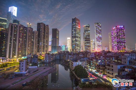 12月19日,广州市正式全面启动冼村城中村改建工作。图为19日傍晚的冼村,与远处灯火璀璨的珠江新城CBD形成鲜明对比。2016年12月19日清晨,位于广州珠江新城旁的冼村,村民们进行完传统而隆重的仪式之后,随着一阵长时间的鞭炮声响,标志着冼村城中村改造工作正式启动。在外界看来,这里又将诞生一批千万甚至亿万富翁,无比羡慕。然而在村民心中,却是说不出的苦涩和辛酸,多年的僵持已是精疲力尽,一些老人家在苦等中离世,早日回新家是他们最大的心愿。