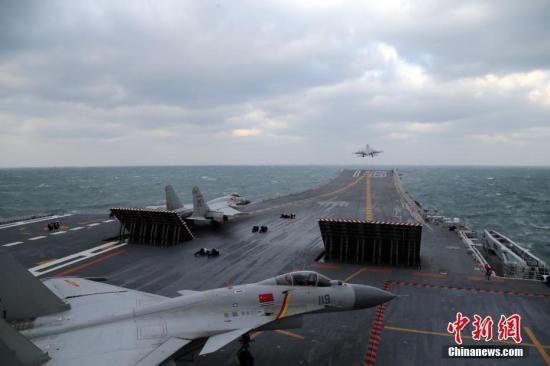 资料图:2016年12月23日,在黄海某海空域,多批次歼-15舰载战斗机从辽宁舰飞行甲板起飞升空,开展了空中加受油、空中对抗等多项训练任务。 中新社发 莫小亮 摄中新社南海某海域1月2日电 (莫小亮)执行跨海区训练试验任务的中国海军航母编队2日在南海某海域组织了歼-15舰载战斗机起降和编队等多科目训练。