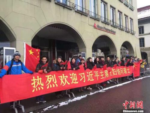 当地华侨华人欢迎中国国家主席习近平访问瑞士。 图片由华人华侨提供中新网1月17日电 中国国家主席习近平日前抵达苏黎世,开始瑞士之行。港台地区及外国华文媒体认为,中国近年来不断增强在国际体系中的影响力,全球治理观有望进一步清晰。