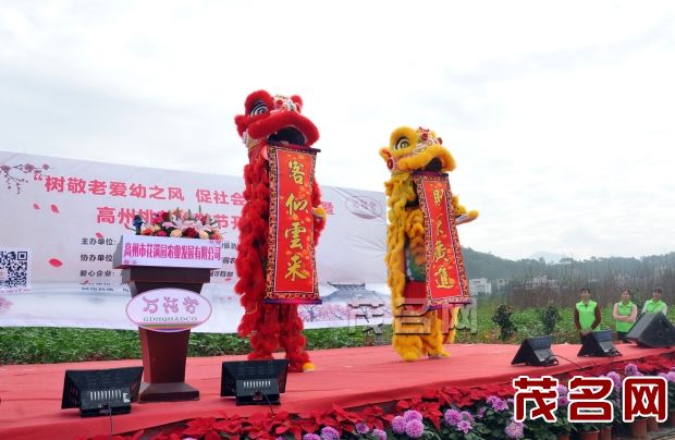 开园仪式上,高州花满园农业公司黄万坚总经理出席并致辞,茂名网副总监湛坚先生代表媒体发言,高州阳光资讯论坛创始人宋召琴女士致欢迎辞。开园仪式节目的表演可谓精彩纷呈,既有优美的古典舞《礼仪之邦》,也有欢快的民族风情舞《幸福山歌》,一个来自四川传统的《变脸》表演令现场掌声不断。仪式上,爱心企业代表及爱心个人代表给100位到场的老人送上精大米和野生淮山,并给100位到场的儿童送上一袋精大米。现场特别邀请了12位“空巢老人”及10位“留守儿童”上台,由高州市志愿者联合会会长和爱心企业代表向他们每人颁发100元现金红包。活动负责人表示,此举是向所有的老人及儿童送上新年的慰问和祝福,以及亲人般的关爱和温暖,让他们在“高凉古城”里,感受“好心高凉”的高州人民善良和爱心。活动中,主办方向爱心企业:高州乡山农业发展公司、高州润景新城项目部、高州市金威电脑公司、深圳瑞宁物业管理公司、高州市东方新娘婚纱影楼颁发了荣誉证书,感谢他们为老人和孩子的爱心捐助义举。
