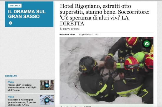 安莎社今天的头条就是八位幸存者获救带来希望的新闻,repubblica今天的头条也是如此,在42小时候获救的幸存者们。