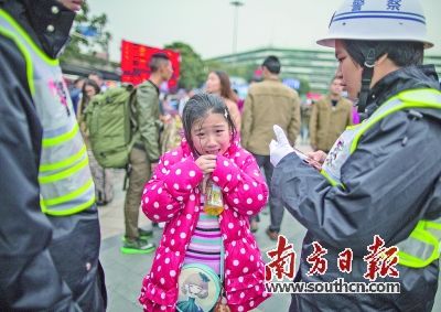 广州火车站,小女孩和爸爸走失了,急得哭了起来。在民警的帮助下,她很快找到了爸爸。