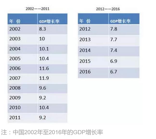 以2002年为起点,是因为从这一年开始中国GDP增长率驶入8%以上的快车道,持续了10年,直到2011年结束,然后增长率降低到了8%以下,持续了5年,直到现在。