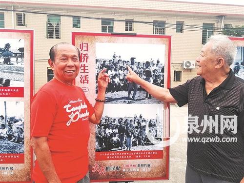 黄贵川和谢佳荣指着旧照片里的自己,跟岁月合了个影。泉州网6月12日讯(记者 黄耿煌 通讯员 黄育红 文/图)“这个笑得最开心的人是我。”日前,在南安雪峰华侨农场,80岁的归侨黄贵川指着一张归侨在田间地头休憩娱乐的老照片,笑不拢嘴。照片里,23岁的黄贵川同样笑得阳光灿烂。当日,2017年“百年跨国两地书”暨“侨批中的家风”福建侨批档案巡回展首站在南安雪峰华侨农场举行,南安市档案馆将包括这张照片在内的一批老照片展示出来。