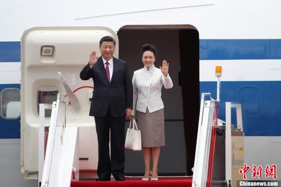 中共中央总书记、国家主席、中央军委主席习近平6月29日中午乘专机抵达香港,出席将于7月1日举行的庆祝香港回归祖国20周年大会暨香港特别行政区第五届政府就职典礼,并视察香港特别行政区。图为习近平和夫人彭丽媛走出舱门,向欢迎的人群挥手致意。中新社记者 盛佳鹏 摄原标题:习近平抵达香港 出席庆祝香港回归20周年大会暨香港特别行政区第五届政府就职典礼并视察香港