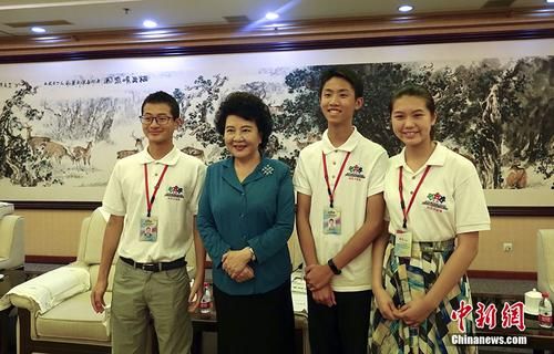 7月11日,中国国务院侨务办公室主任裘援平在北京会见了美国《侨报》小记者访华团,并接受了小记者们的采访。图为裘援平与连续三年参加访华团的小记者合影。 中新社记者 孙翔 摄原标题:裘援平接受《侨报》小记者访华团采访:沐侨胞桑梓情深 盼温暖更多侨心