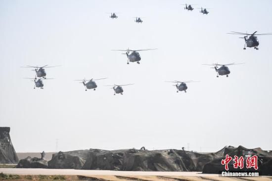 7月30日,庆祝中国人民解放军建军90周年阅兵在位于内蒙古的朱日和训练基地举行。图为空中突击梯队接受检阅。 中新社记者 崔楠 摄中新社北京7月30日电 题:参阅装备新而全 中国“沙场点兵”非“秀肌肉”