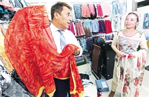 2003年,伊朗商人哈米来到浙江省义乌市,做伊朗丝巾进口生意。2007年,他和中国籍妻子成立了义乌市首家由外商创办并拥有进出口权的外贸公司,如今已在北京、上海和广州开设了分公司。据义乌市公安局出入境管理局介绍,现有100多个国家和地区约1.5万名境外客商常驻义乌。图为哈米(左)在义乌国际商贸城向经营户了解丝巾流行新款式。 (新华社发)近年来,我国推出一系列更加开放、便捷的出入境政策,为落实人才强国战略、促进创新驱动发展创造了良好的出入境环境,在吸引外籍高层次人才和创新创业人员等方面发挥了显著作用,受到在华创新创业外籍人才的普遍欢迎。在永久居留方面,中国“绿卡”含金量不断提高,更加强化证件使用的便利性,使有志于来华发展的外国人才来得了、待得住。