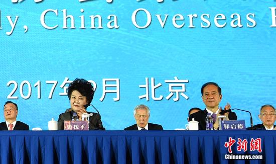 9月28日,中国海外交流协会第六次会员大会在北京召开,来自五大洲83个国家和地区的537位侨界代表人士以及国内相关部门负责人出席大会。全国政协副主席韩启德当选中国海外交流协会第六届理事会会长,国务院侨务办公室主任裘援平当选常务副会长,许又声、谭天星、郭军、江岩当选副会长,谭天星兼任秘书长。 中新社记者 张勤 摄中新社北京9月28日电 (记者 周欣嫒)中国海外交流协会第六次会员大会28日在北京召开,来自五大洲83个国家和地区的537位侨界代表人士以及国内相关部门负责人出席大会。