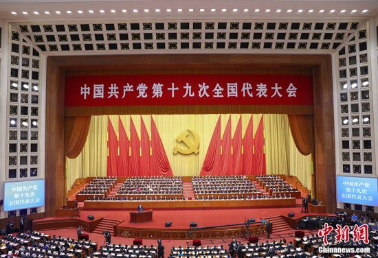 10月18日上午,中国共产党第十九次全国代表大会在北京人民大会堂开幕。 中新社记者 刘震 摄【聚焦十九大】(十九大时光)全球媒体聚焦中共十九大开幕