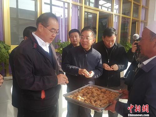 11月16日,国务院侨办副主任郭军(左一)在定点帮扶点甘肃积石山县入村进户调研扶贫工作。 中新社记者 殷春永 摄中新社兰州11月16日电 (记者 南如卓玛 魏建军)国务院侨办副主任郭军一行16日在甘肃积石山县进村入户调研扶贫工作。