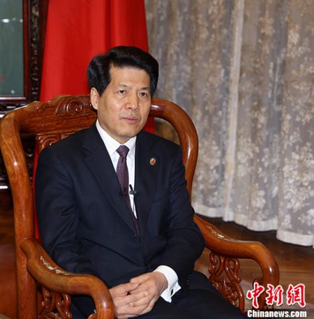 当地时间11月22日,中国驻俄罗斯大使李辉在接受包括中新社在内的中俄媒体联合采访时说,“一带一路”国际合作将进一步扩大各成员国之间的务实合作,激发新的增长点,为全球化背景下的区域发展繁荣带来新的强大动力。 中新社记者 王修君 摄中新社莫斯科11月22日电 题:中国驻俄大使:“一带一路”为区域发展带来新动力