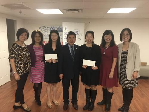 李素英(左三)和李晓璐(右三)获2017年美国华裔注册护士协会奖学金。(美国《世界日报》/记者 牟兰摄)中国侨网12月27日电 题:2017年这些华侨华人将普通生活过得不平凡
